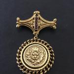 Vintage, Estate, Jewelry, Coat Of Arms, Gold Tone, Brooch, Pin, Metal, Amethyst (3 photos)