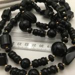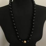 Vintage Faux Black Bead Necklace Gold Tone Accents (3 photos)