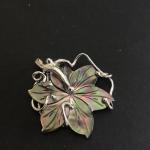 Beautiful, Silver Toned, Carved Ablone Shell Flower Pendant (3 photos)