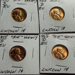 (4) 1955-D BRILLIANT UNCIRCULATED RED "BIE VARIETY" LINCOLN CENTS… Read More →