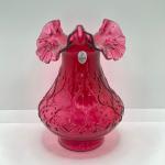 Lot 70: Fenton Cranberry Art Glass Ruffled Top Vase (12 photos)