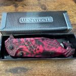 Red and black design spring assisted war tech pocket knife with belt cutter in… Read More →