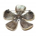 Brushed Silver Colored Metal 3-Leaf Brooch (3¼" X 1¾") Marked © Pim With Silv (3 photos)