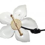 Vintage Large White Flower Brooch (3¾" X 2½") With Black Center & Stem And Gol (2 photos)
