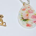 Composite Oval Rose Pendant / Necklace Combo With White Rope And Gold Tone Tips (2 photos)