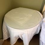 Elegant vintage round accent table featuring a clear glass top and decorative… Read More →