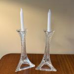 Pair Of Vintage Clear Glass Taper Candle Holders – Twisted Optic Column Candle (2 photos)