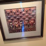 Striking framed Haitian / Caribbean folk art style wall art featuring a repeated… Read More →