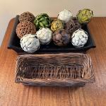 Decorative Tray Lot With Assorted Botanical Filler Balls, Wicker Basket & Black (7 photos)