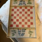 Vintage Folk Art Wooden Wall Hanging Tray Country House Red Check Farmhouse Deco (3 photos)