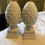 Pair Distressed White Pinecone Finials On Pedestal Bases – 12” Decorative Sc (2 photos)