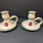 Ceramic Candle Holders Set Of 2 With Apple Design (4 photos)