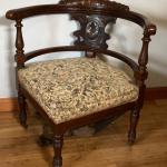 Antique Victorian Carved Walnut Roundabout Corner Chair – Original Casters (10 photos)