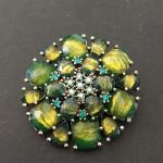 Beautiful, Vibrant, Green, Gold Tone, Circular Brooch (3 photos)
