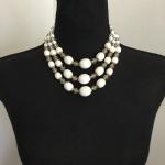 Beautiful, Vintage, Multi Strand, White Bead, Faux, Crystal Statement, Necklace (3 photos)