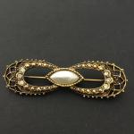Vintage 1928 Co. Victorian, Gold, Toned Bar, Brooch, Classic Faux Pearl (3 photos)