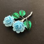 Light Blue Celluloid Enamel Leaf Vintage Roses Brooch (3 photos)