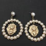 Beautiful, Gold, Toned, Pearly Lion Statement Earrings (3 photos)