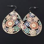 Vintage, Gold, Toned, Enamel Flower, Statement Earrings (3 photos)