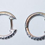 Silver Colored Circle Style Earrings Set With Jewels On 1/3 Of The Band And Snap (2 photos)