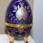 Beautiful Deep Blue Flowered Designed Gold Colored 3-Legged Jewelry Trinket "Egg (6 photos)