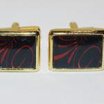 NEW CUFFLINKS SET with Red Swirls on Black Center RECTANGLE on a Gold Tone… Read More →