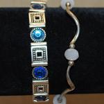 Collection Of 2 Elastic Bracelets (2" Opening) With Blue Round Stones + Square A (4 photos)