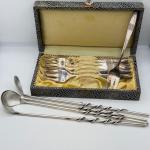 Lot 206: 6 Vintage 3-Prong Forks In Case & 4 Straw Swirl Spoons (9 photos)