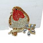 Beautiful RED Breasted BIRD BROOCH (2" x 2") with Clear, Amber Round… Read More →