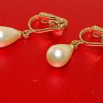 Teardrop Dangle Faux Pearl EARRING Set with Gold Tone Snap-On Clasp