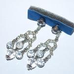 Silver Colored DANGLE EARRINGS with Clear round Stones and Stud Post Clasp