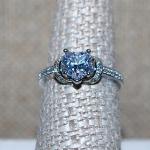 Size 6 Marked .925 "Puffy" Violet Party Ring With A Single Main Clear Round Ston (4 photos)