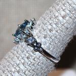 Size 7½ Iridescent Blue Tint Beveled Square Stone Ring Set Sideways With Both B (4 photos)
