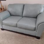 Leather Double Cushion Loveseat Seafoam with Mahogany Frame… Read More →