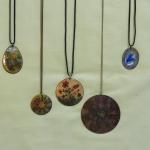 Five necklaces with enamel worked metal pendants. Their chains range from 17-24”… Read More →