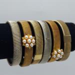 Six gold tone stretchy bangle style bracelets that appear to be vintage. Some… Read More →