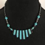 Beautiful Hematite And Turquoise Bead Statement Necklace. Very Nice. (4 photos)