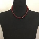 Silver, Toned, Cranberry Red Glass Bead Necklace (4 photos)
