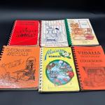 Lot of 6 vintage spiral-bound community and regional cookbooks featuring… Read More →