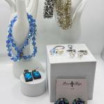 Lot 229J: Vintage Blue Aurora Borealis Bead Necklace W/ Earrings & Stretch Brace (12 photos)