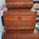 This three-piece vintage woven bamboo trunk set presents a beautifully… Read More →