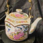 Vintage Homco Japanese Porcelain Teapot Brass Handle Floral Bird (5 photos)