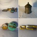 Lot includes a vintage pewter tobacco jar with lid and six vintage tobacco tins… Read More →