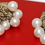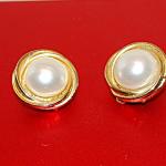 BUTTON Faux Pearl EARRINGS Set with Gold Tone Overlapping Edge and Clip-On… Read More →