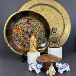 Lot 54: Collection Of Asian Figures, Lacquered Serving Dish, Metal Tray And More (18 photos)