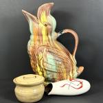 Lot 45: Vintage Oaxacan Drip Ceramic Duck Pitcher, Ceramic Wall Pocket Vase And (9 photos)