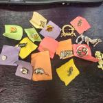 Assortment 15+ lapel pins, including designs such as animals, a USA pin, and… Read More →