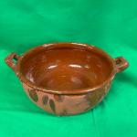 This ceramic bowl features a glazed interior and exterior with two side handles.… Read More →