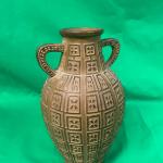 Two-handle ceramic vase with a textured geometric pattern. Approximated… Read More →