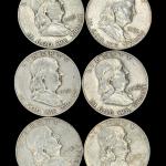 Total of six coins, with assorted dates. Not graded. Silver content is 90%. [BS]… Read More →